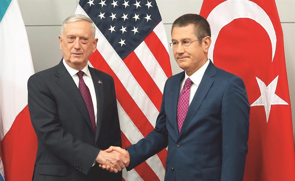 - NATO Karargahı’nda ABD’li mevkidaşı James Mattis’le görüştüğünü kaydeden Milli Savunma Bakanı Nurettin Canikli, “Özellikle Münbiç’teki yol haritasıyla alakalı son derece ayrıntılı, yapıcı ve olumlu bir görüşme gerçekleştirdik” dedi. PKK’dan temizlenecek Münbiç konusunda ABD ile Türkiye arasında yeni bir ilişki hattının ortaya çıktığına işaret eden Canikli, sürecin başarılı olması halinde bu ilişkinin Suriye’nin diğer bölgelerinde de devam edeceği mesajını verdi. PKK’lıların boşaltılması sonrası güvenliğin Türk ve Amerikan askerlerince sağlanması konusunda “Münbiç’te devriye görevi tamamen Türkiye ve ABD kuvvetleri birlikte yapacak” diyen Canikli, bunun son derece önemli olduğunu dile getirdi. Mattis’le görüşmede F-35 konusunun da gündeme geldiğini belirten Canikli, F-35 projesi kapsamında Türkiye’nin şimdiye dek 800 milyon dolar ödemeye yaptığını, 11 milyar dolar yükümlülük altına girdiğini, sorumluluklarını tam olarak yerine getirdiğini ve dolayısıyla F-35’lerin Türkiye’ye tesliminde sorun çıkarılmaması gerektiğini kaydetti. Rusya’dan alınacak S-400 hava savunma sistemi bahanesiyle F-35’lerin tesliminde bir sıkıntı yaşanmaması gerektiğini bildiren Canikli, “Bizim temennimiz S-400 ya da başka şartlara bağlanarak F-35 projesinin geciktirilmemesi. Bunu bekliyoruz. S-400 sistemi hiçbir şekilde, hiçbir NATO unsurunu, F-35 uçakları dahil rahatsız etmeyecek ve onlar için bir tehdit ve tehlike oluşturmayacak. Bu garantiyi kendilerine verdik” diye konuştu.