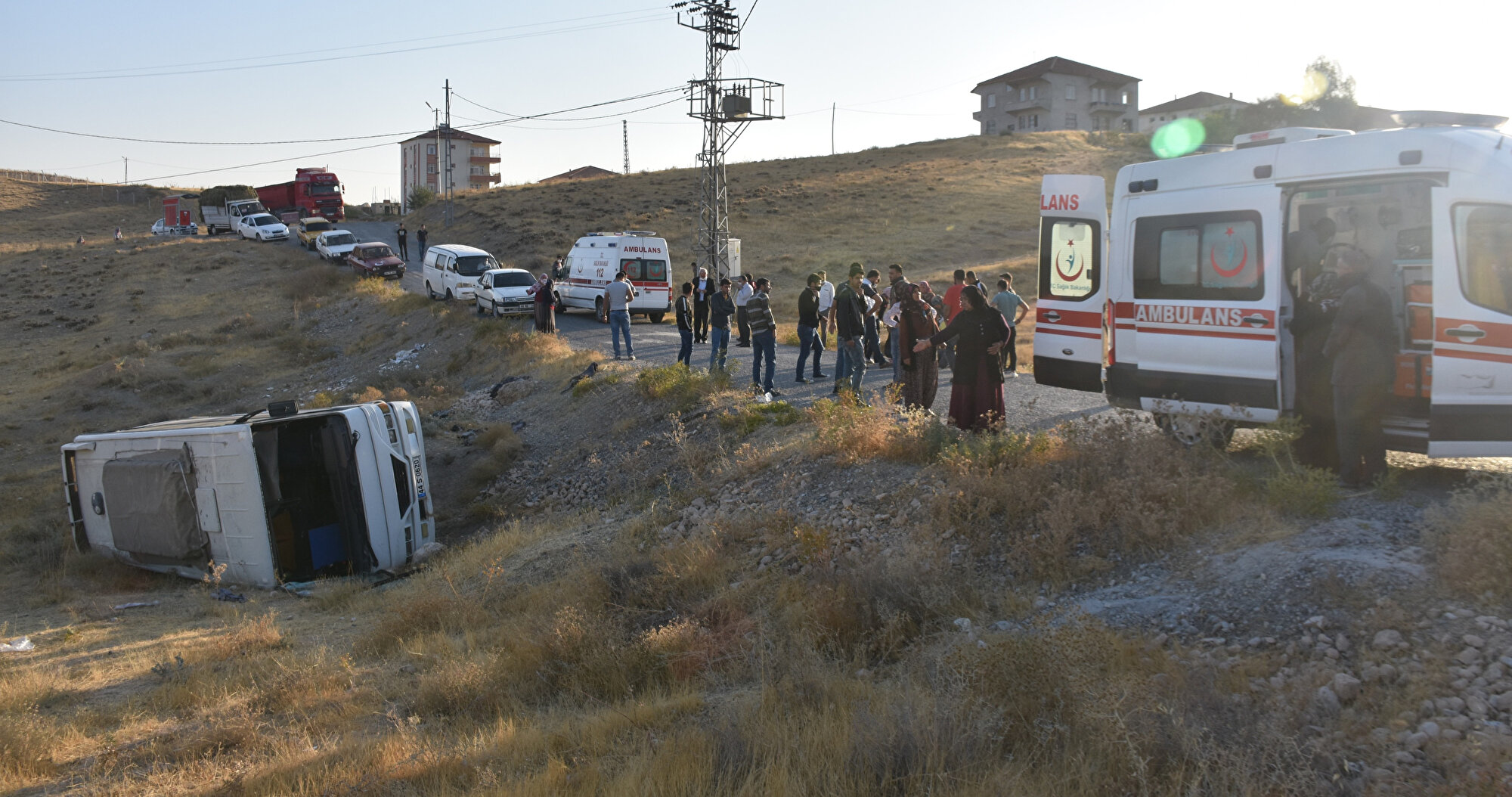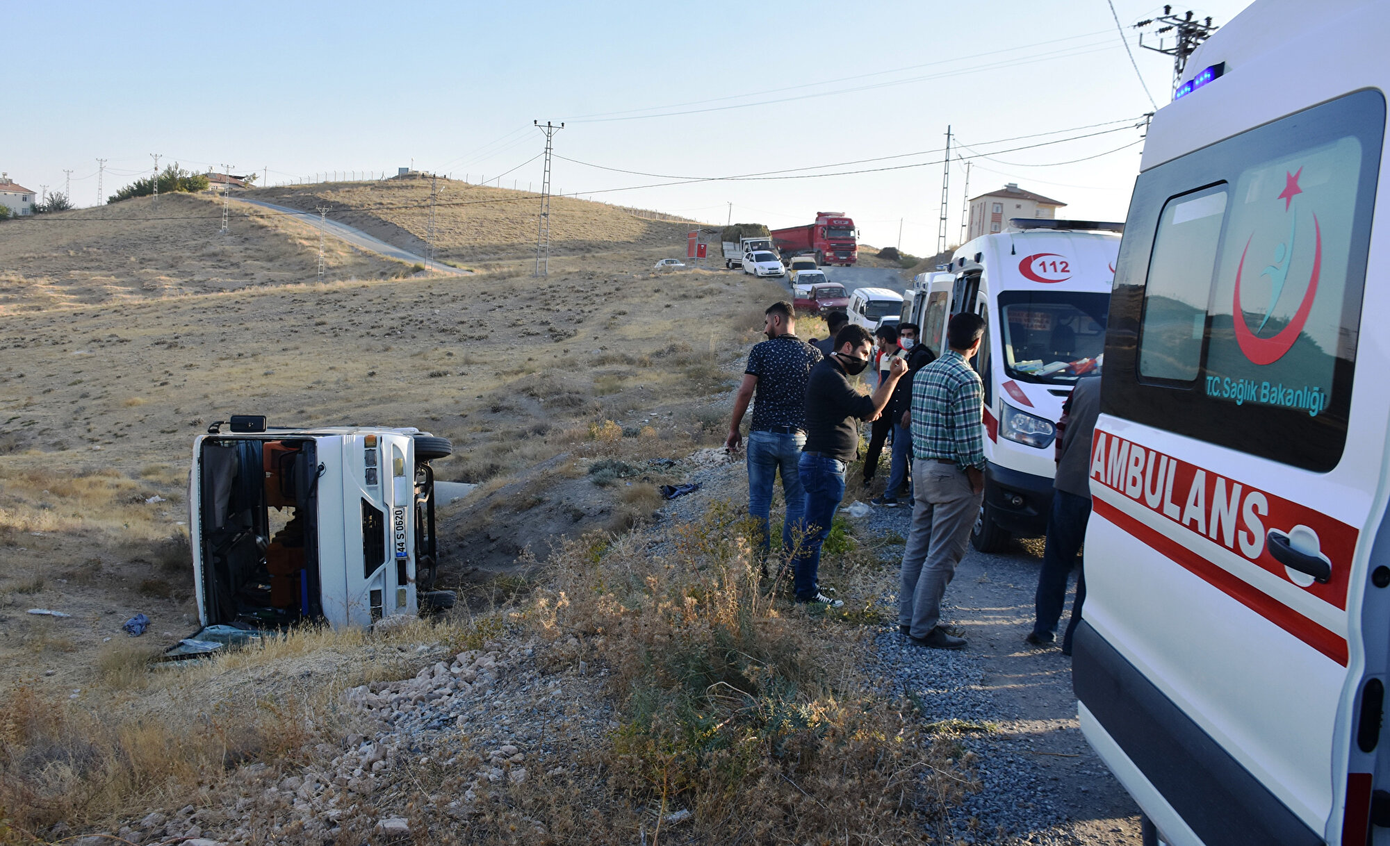Malatya'da fabrika işçilerini taşıyan midibüsün şarampole devrilmesi sonucu 14 kişi yaralandı.