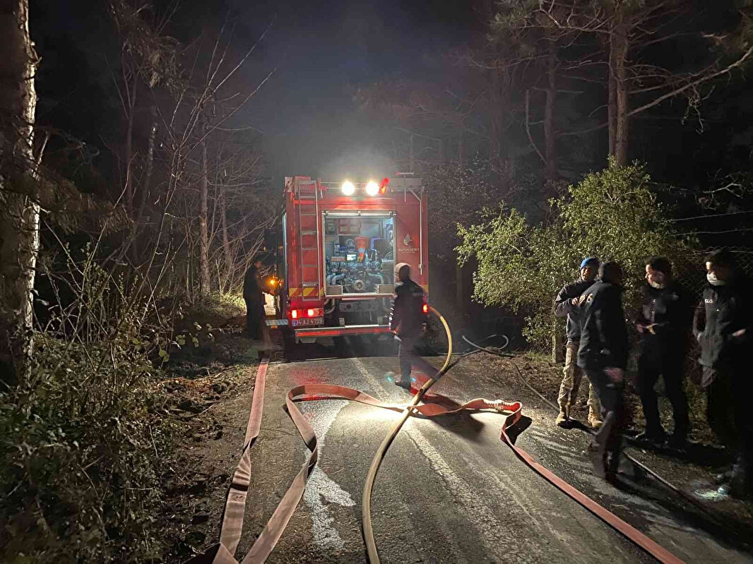 İtfaiye ekiplerinin yangına hızlı müdahalesiyle 2 dönümlük arazideki yangın yayılmadan kontrol altına alındı.