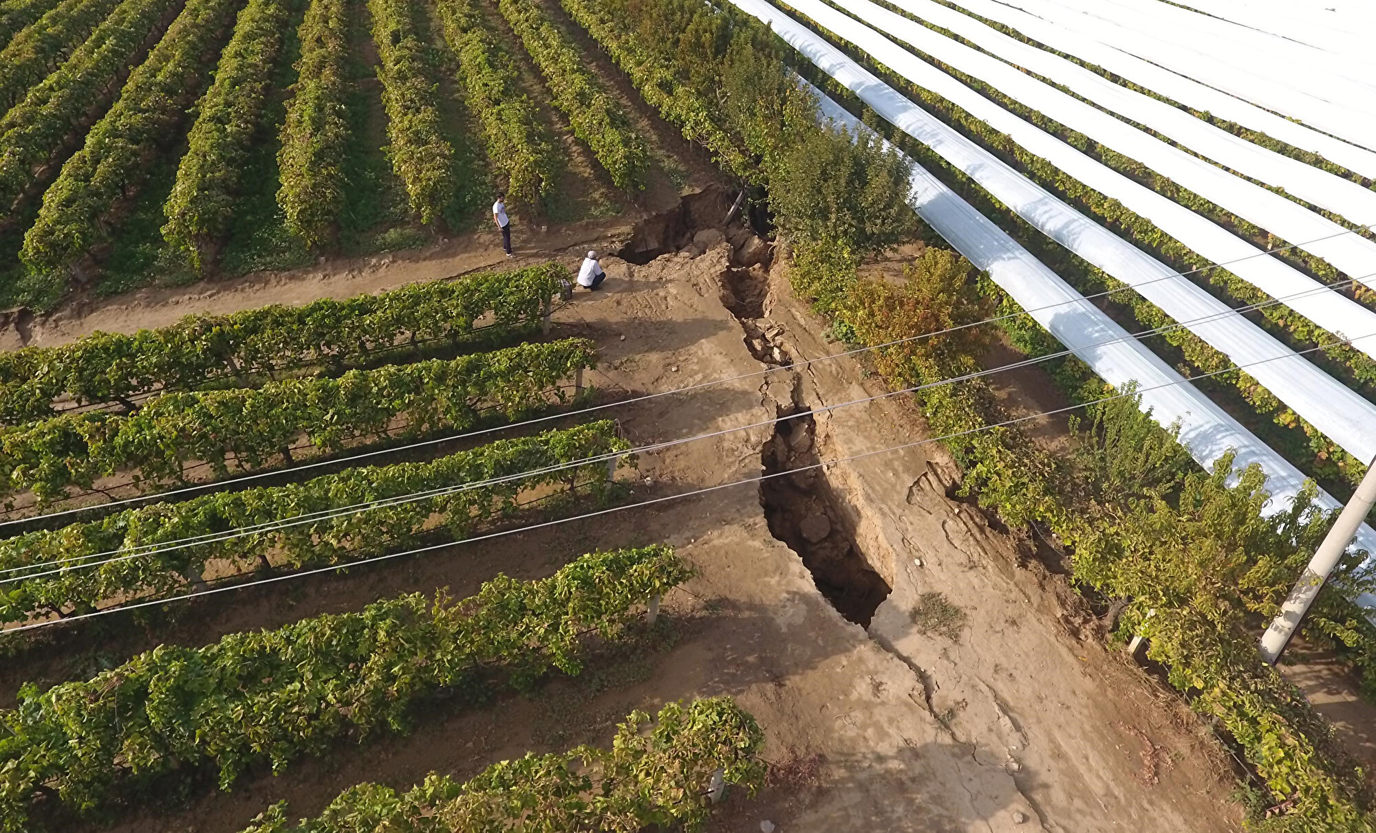 Manisa'nın Sarıgöl ilçesinde, geçen 18 Ekim'de şiddetli yağışın ardından meydana gelen sel, fay hattının üzerinde kurulu üzüm bağlarında devasa yarık ve çukurların oluşmasına neden oldu. İlçe halkı, önlem alınması için yetkililere çağrıda bulundu.