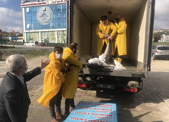 Kara, “Dün gece Marmara Denizi açıklarında yakalandı bu kılıç balığı. 3 metrenin üzerinde boyu var. Cuma gününe kadar halkımıza sergileyeceğiz Beylikdüzü Balıkçılar Çarşısı’nda Cuma günü öğlen 2 gibi kesip halkımıza satışa sunacağız. Bu ebatlarda devasa bir Kılıç balığı uzun zamandan beri yoktur. Bu yılın ilk Kılıç balığı. Kilosu yaklaşık 80- 100 lira arası satışa sunulur. Çok güzel çok özel bir balık” dedi.