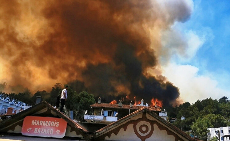 Muğla’nın Marmaris ilçesinde çıkan yangın yerleşim yerlerini tehdit ederken, yangın bölgesine yakın yerlerdeki otel ve evler tahliye ediliyor. Edinilen bilgiye göre, Siteler Mahallesi mevkiindeki ormanlık alanda yangın çıktı. Yangın ihbarı üzerine bölgeye itfaiye ve Muğla Orman Bölge Müdürlüğü ekipleri sevk edildi.