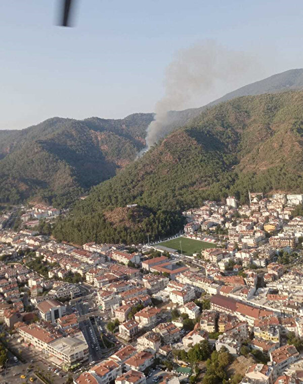 Muğla'nın Marmaris ilçesinde çıkan orman yangınına 5 uçak ve 10 helikopter ile havadan, 34 arazöz, 10 su tankeri ve 150 işçi ile karadan müdahale ediliyor. Ekiplerin bölgedeki yoğun çalışması devam ediyor.