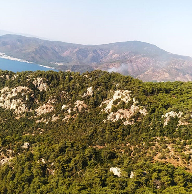 Muğla’nın Marmaris ilçesinde iki gün önce yıldırım kaynaklı orman yangınının çıktığı Cennet Adası’ndan tekrar dumanlar yükselmeye başladı.