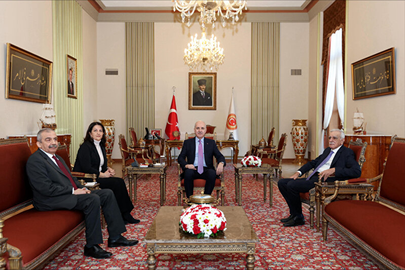 DEM Parti İmralı heyeti Meclis Başkanı Numan Kurtulmuş'u makamında ziyaret etti.