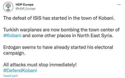 HDP'nin Avrupa Temsilciliği'nin sosyal medya hesabından İngilizce olarak yapılan paylaşımda