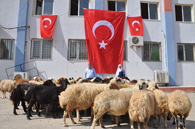 Şanlıurfa’nın Suriye sınırındaki Akçakale ilçesinde, Barış Pınarı Harekatı’na katılan Mehmetçikler için 50 kurban kesildi. Yetiş-Tim Derneği Bursa Şube Başkanı Şerife Sağlam, "Hayvanlarımızı aldık. Allah'ın izniyle bugün de burada Allah için, Mehmetçiğimizin selameti için, vatanımızın selameti için hayvanları kurban edeceğiz" dedi.