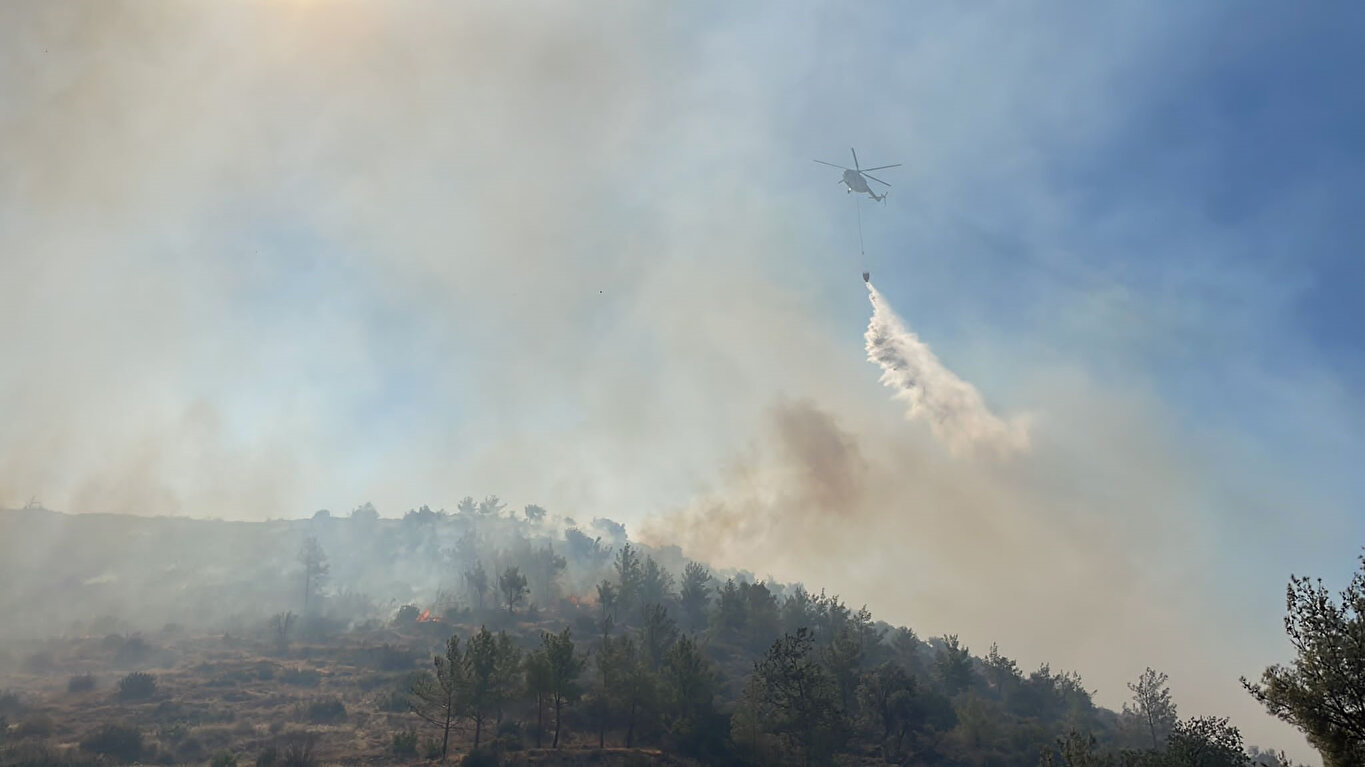 Yangına 5 uçak, 3 helikopter, 40 arazöz ve 300 personelle müdahale ediliyor.
