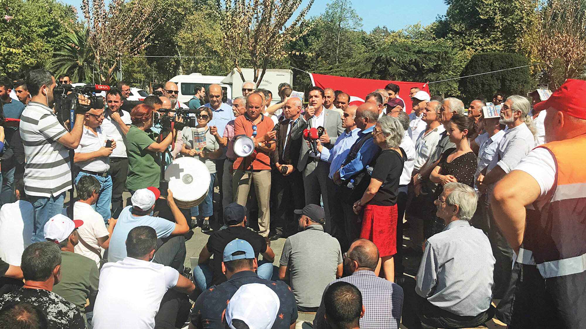 - İstanbul Büyükşehir Belediyesi'nde görevlerine son verilen işçilerin, eylemi devam ediyor. Vatan Partisi Merkez Yürütme Kurulu üyesi ve İstanbul İl Başkanı Cem Dikmen ve partililer de işçilere destek verdi. Saraçhane'de, "Birleşe birleşe kazanacağız", "Namus, vatan, emek" gibi sloganlar atan işçilerle görüşen Dikmen, "İşçiyi kendi emeği ve görüşü ile sınırlayanlar ve ona göre ayıranlar samimiyetsizdir. Emekçilerimizi, şu partiden, bu partiden, şu veya bu sendikadan diye ayıramazsınız" dedi.