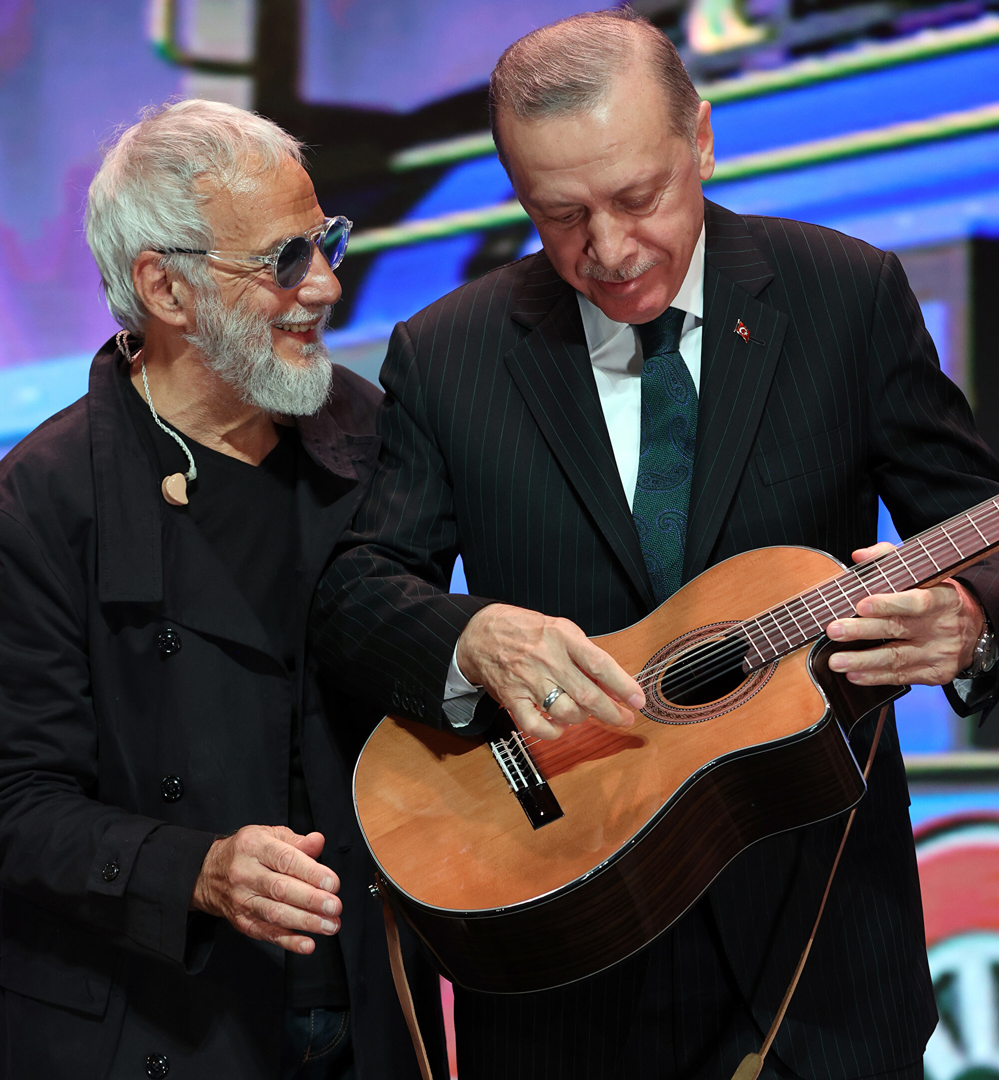 - Cumhurbaşkanı Erdoğan, İngiliz müzisyen Yusuf İslam’ın Beştepe’deki konserini izledi. Konseri, Cumhurbaşkanı Erdoğan’ın eşi Emine Erdoğan, Yusuf İslam’ın eşi Fauzia Mubarak Ali de izledi. Erdoğan günün anısına Yusuf İslam’a vazo hediye ederken, eşi Emine Erdoğan ise kendisine çiçek takdiminde bulundu. Yusuf İslam ise Cumhurbaşkanı Erdoğan’a çaldığı gitarı hediye etti.