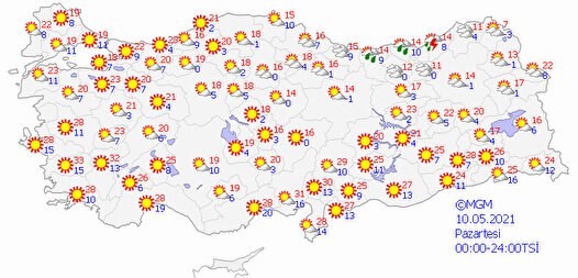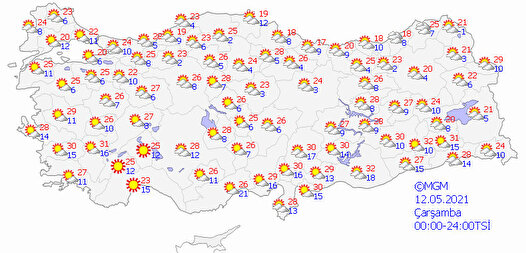 Meteoroloji Genel Müdürlüğü tarafından yapılan son değerlendirmelere göre; Doğu Karadeniz kıyıları ile bu akşam saatlerinde Doğu Anadolu'nun kuzeydoğusunun sağanak yağışlı, diğer yerlerin az bulutlu ve açık seyredeceği tahmin ediliyor.
