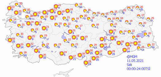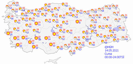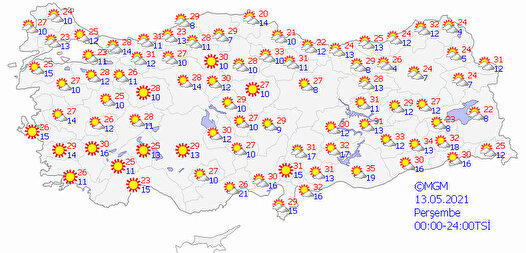Ramazan Bayramı'na sayılı günler kala meteoroloji beş günlük hava durumu raporunu yayımladı. Yapılan son değerlendirmelere göre yeni haftada ülke genelinin neredeyse tamamında yağış görünmez iken sıcaklıkların ise mevsim normallerinin altında olması bekleniyor. İşte yurt genelinde il il hava durumu..