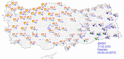 Doğu Anadolu’nun güneydoğusu ve Güneydoğu Anadolu ile Elazığ, Bingöl, Muş, Kars, Ağrı ve Iğdır çevrelerinin çok bulutlu ve yağışlı geçeceği tahmin ediliyor. Yağışların, Güneydoğu Anadolu’da yağmur, yağış alan diğer yerlerde karla karışık yağmur ve kar şeklinde olmak üzere Hakkari ve Şırnak çevrelerinde yoğun olması bekleniyor.