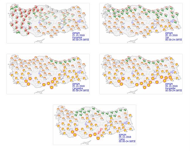 Edirne, Kırklareli, Çanakkale, İzmir, Aydın, Muğla çevreleri ile Antalya ve Burdur'un doğu ve Isparta'nın güney kesimlerinde kuvvetli yağış olacağı tahmin ediliyor.