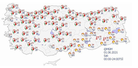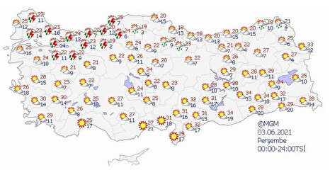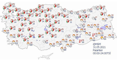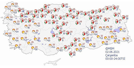 Meteoroloji Genel Müdürlüğü tarafından yapılan son değerlendirmelere göre; yurdun kuzey ve iç kesimlerinin parçalı, yer yer çok bulutlu, sabah ve öğle saatlerinde Doğu Karadeniz’in iç kesimleri, Trakya’nın batısı ve Doğu Toroslar’ın yerel, akşam ve gece saatlerinde ise Marmara ve İç Ege’nin doğusu, Batı Akdeniz’in iç kesimleri ve Batı Karadeniz’in batısı ile Eskişehir ve Ardahan çevrelerinin yer yer çok bulutlu yerel sağanak ve gök gürültülü sağanak yağışlı geçeceği tahmin ediliyor. İşte 30 Mayıs 2021 yurt geneli hava durumu...