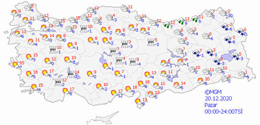 Pazar günü Doğu Anadolu ve Doğu Karadeniz'de kar yağışı bekleniyor. Yurt genelinde ise güneşli bir hava olması bekleniyor.