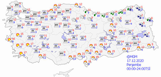 Meteoroloji Genel Müdürlüğü 17 Aralık hava durumu raporunu paylaştı. Kış soğuklarının kendini iyiden iyiye hissettirmesinin ardından çok sayıda kişi yeni günde havanının durumunu merak ediyor. Meteoroloji ise son raporunda yoğun kar yağışı uyarısında bulundu. Kurumdan yapılan uyarıda Trabzon'un doğusu, Rize ve Artvin'in 1100 metre üzeri rakımlı kesimlerde kuvvetli ve yer yer yoğun kar yağışı öngörülüyor. İşte ülke genelinde il il hava durumu..