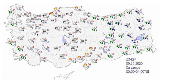 Yağışların karla karışık yağmur ve kar şeklinde olması bekleniyor. Gece ve sabah saatlerinde buzlanma ve don olayı ile birlikte, yer yer pus ve sis hadisesi bekleniyor.