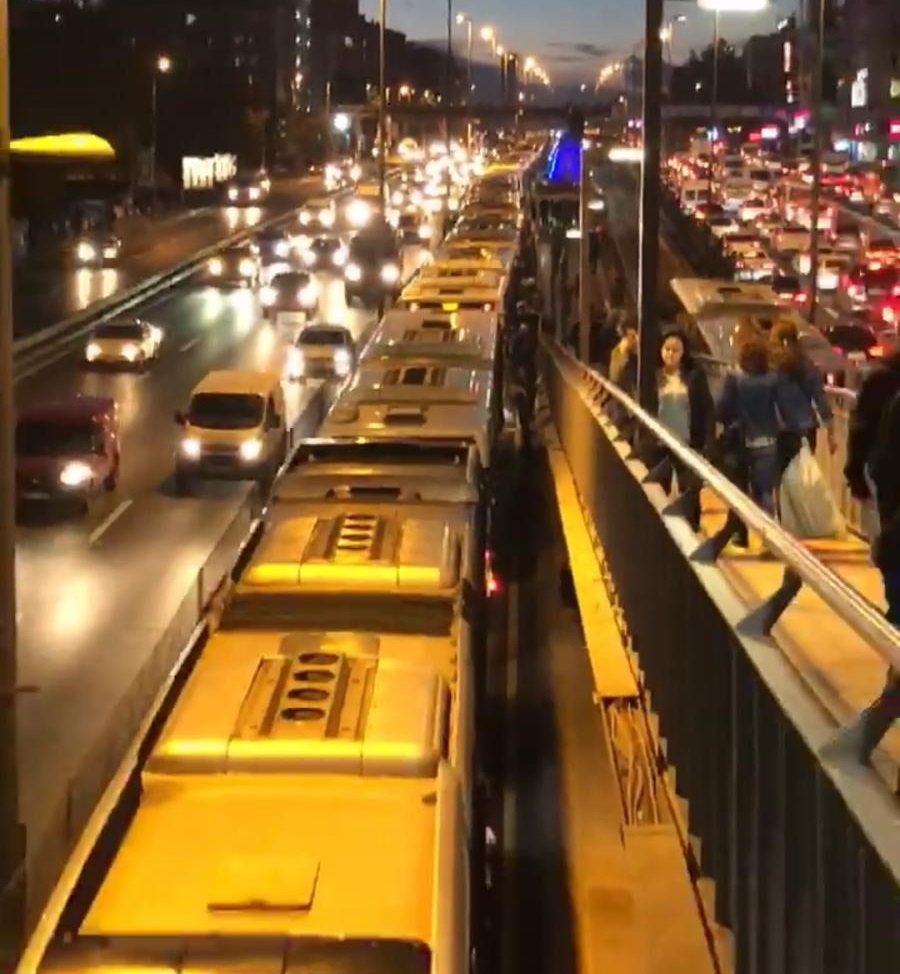 İstanbul’da Beylikdüzü istikametinde seyreden ve Şükrübey durağında arızalanan metrobüs nedeniyle metrelerce metrobüs kuyruğu oluştu. Beklemek istemeyen bazı vatandaşlar metrobüsten inerek Avcılar’a kadar yürüdü.