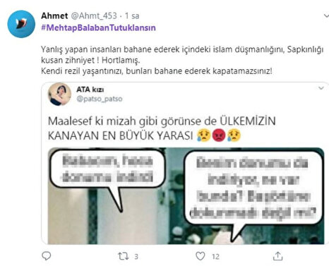 Sosyal medyada İslam dinine hakaret içeren paylaşımlar yaptığı gerekçesiyle yargılanan Mehtap Balaban'ın "zincirleme şekilde halkı kin ve düşmanlığa tahrik veya aşağılama" suçundan 7 aydan 1 yıl 9 aya kadar hapisle cezalandırılması istendi. Balaban, Twitter hesabından yaptığı paylaşımlar nedeniyle yaklaşık bir ay cezaevinde kaldıktan sonra tahliye edilmişti.