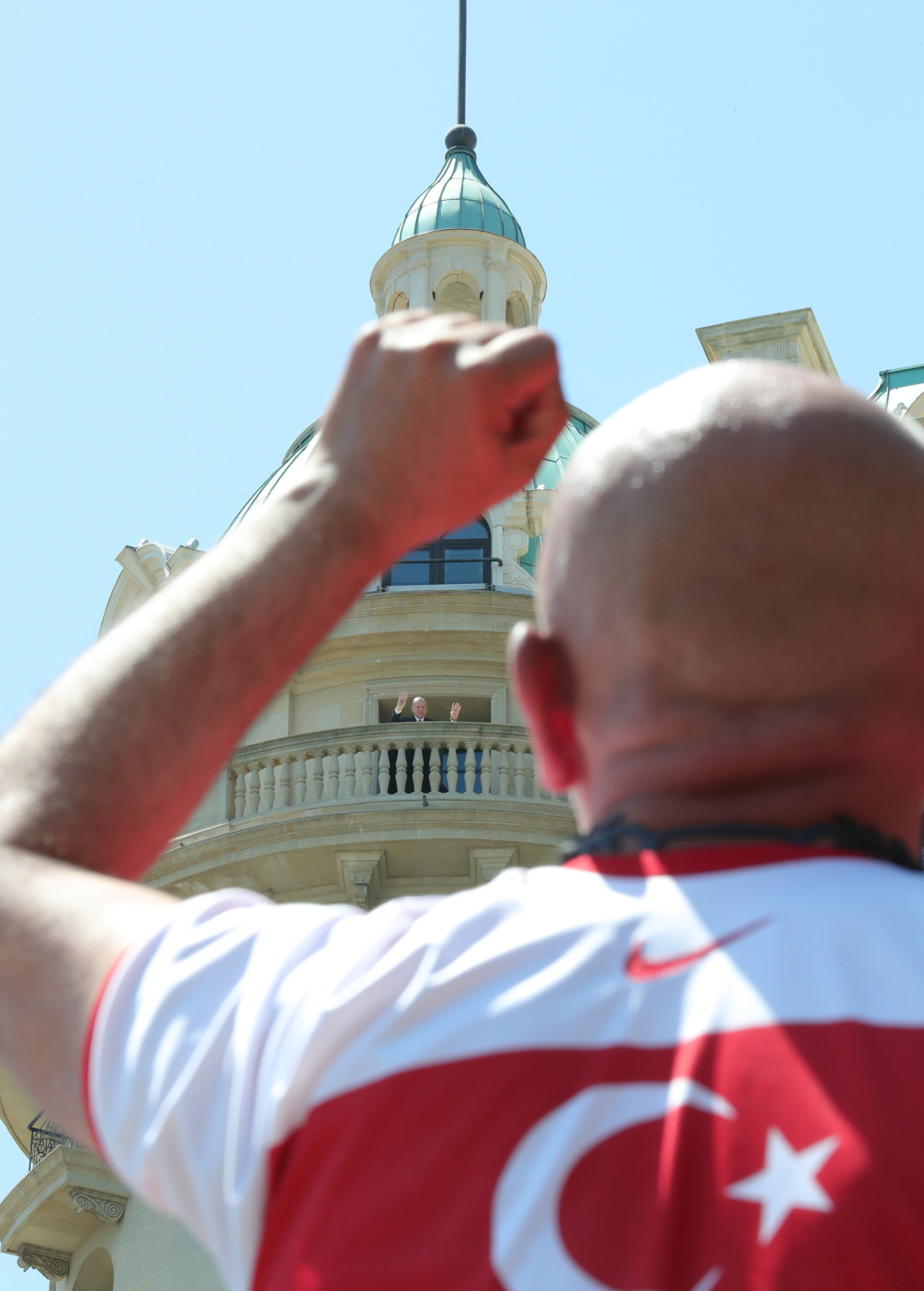 Cumhurbaşkanı Recep Tayyip Erdoğan, Avrupa Futbol Şampiyonası’nda bugün oynanacak Türkiye-Galler maçını izlemek için Bakü’de bulanan Türk taraftarlarla bir araya geldi.