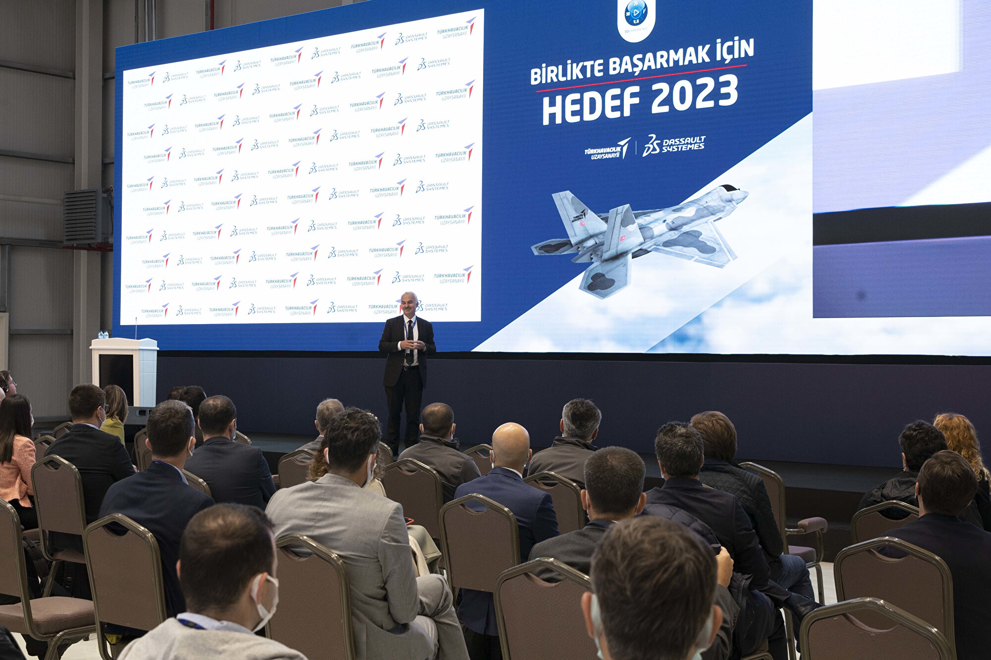 MMU'nun 18 Mart 2023'te hangardan çıkması için çalışmalarını hızla sürdüren TUSAŞ, dijital ikiz teknolojisi için kullandığı PLM (Product Lifecycle Management) sistemi tecrübesini savunma ve havacılık camiasındaki seçkin davetlilerle bir araya geldiği etkinlikte paylaştı. Etkinlikte, TUSAŞ tecrübeleriyle birlikte Dassault Systemes firmasının bilgi paylaşımları ve sektördeki başka firmaların PLM uygulama tecrübeleri de aktarıldı.