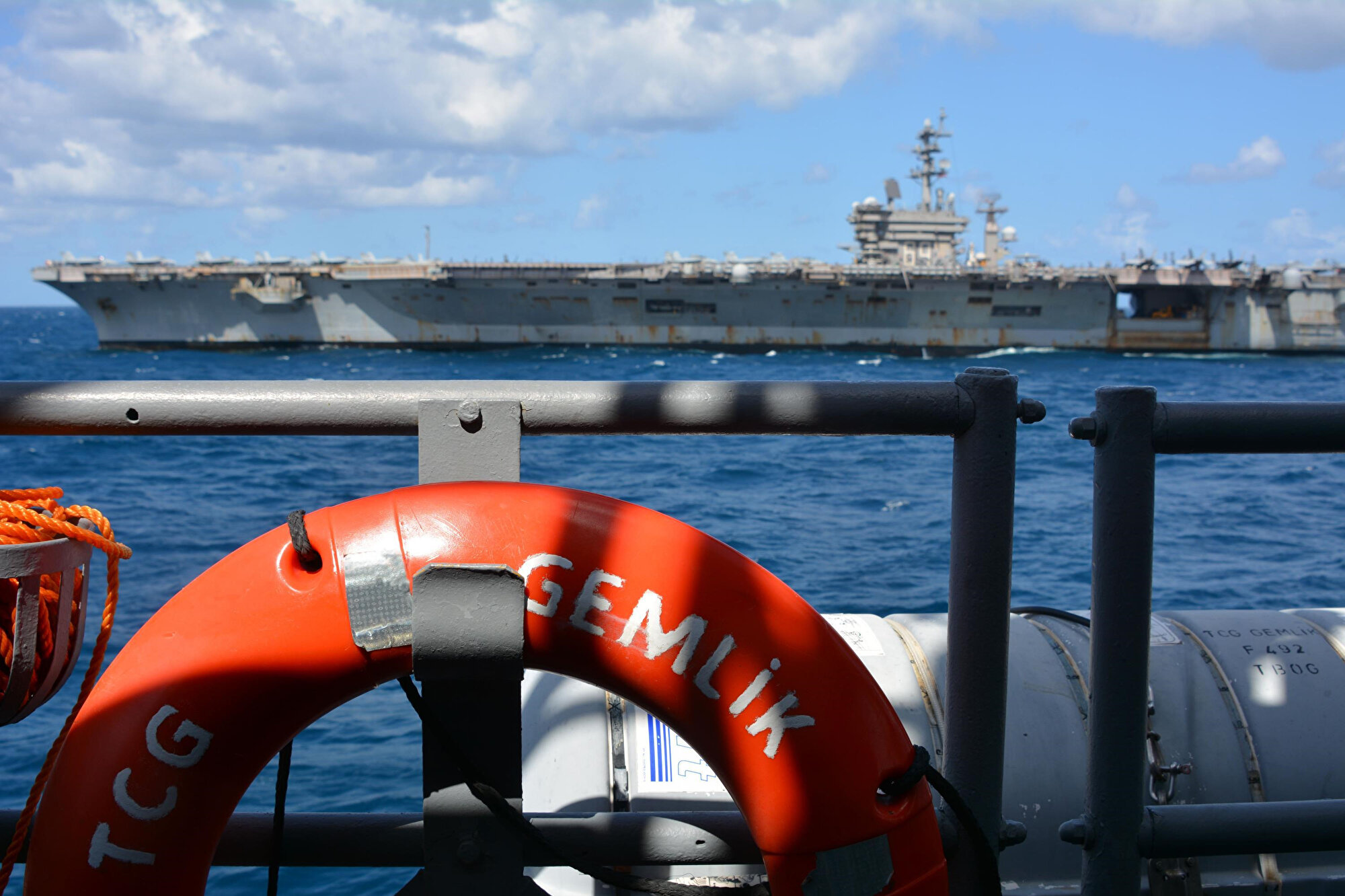 Milli Savunma Bakanlığı (MSB), geçtiğimiz günlerde Deniz Kuvvetleri Komutanlığı'na bağlı TCG Gemlik gemisinin Rodos güneyinde ABD’nin Eisenhower Uçak Gemisi Görev Grubu ile bir araya gelerek ortak eğitim faaliyetinde bulunacağını açıklamıştı.