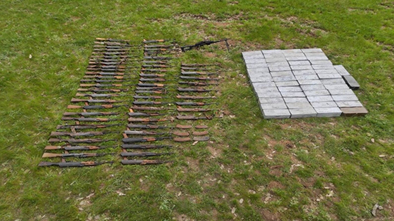 Makineli tüfeğin de yer aldığı 94 ağır silahı ele geçiren Mehmetçik, roketatar, bombaatar ve havan gibi ağır silahlara ait 20 binden fazla mühimmat buldu.