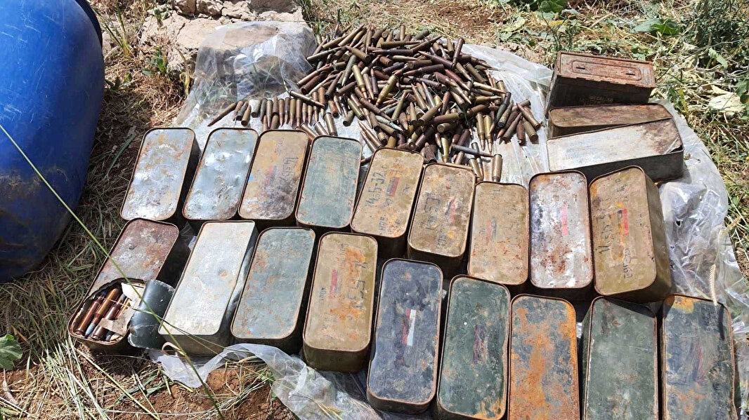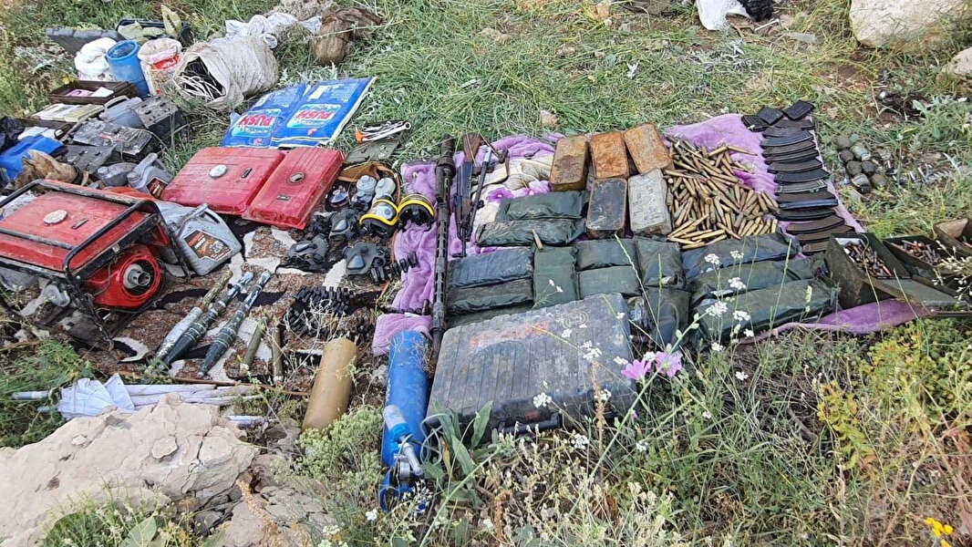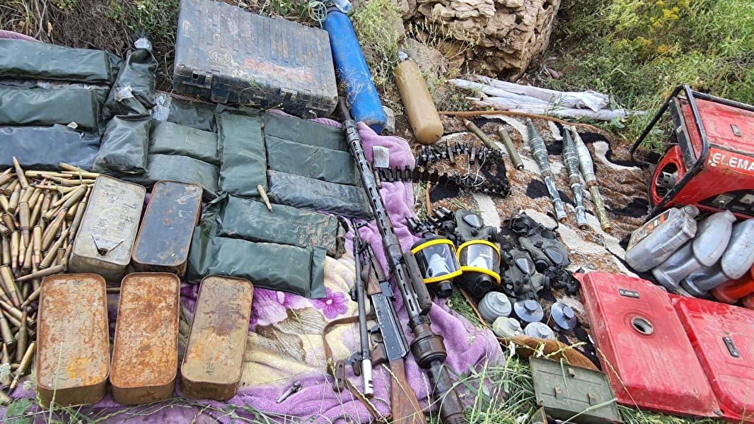 Açıklamada, "AK-47 piyade tüfeği, 36 el bombası, 3 A/T RPG mühimmatı, 2 A/P RPG mühimmatı, 100 kilo amonyum nitrat patlayıcı, 2 bin 100 adet 14.7 milimetre Doçka makineli tüfek mühimmatı, 1500 adet 12.7 milimetre uçaksavar mühimmatı, 3 bin adet 7.62 milimetre PKMS makineli tüfek mühimmatı, 2 bin adet 7.62 milimetre AK-47 piyade tüfeği mühimmatı, 15 AK-47 piyade tüfeği şarjörü, Doçka makineli tüfek namlusu, PKMS makineli tüfek namlusu ve çok sayıda yaşam malzemesi ele geçirildi" denildi.