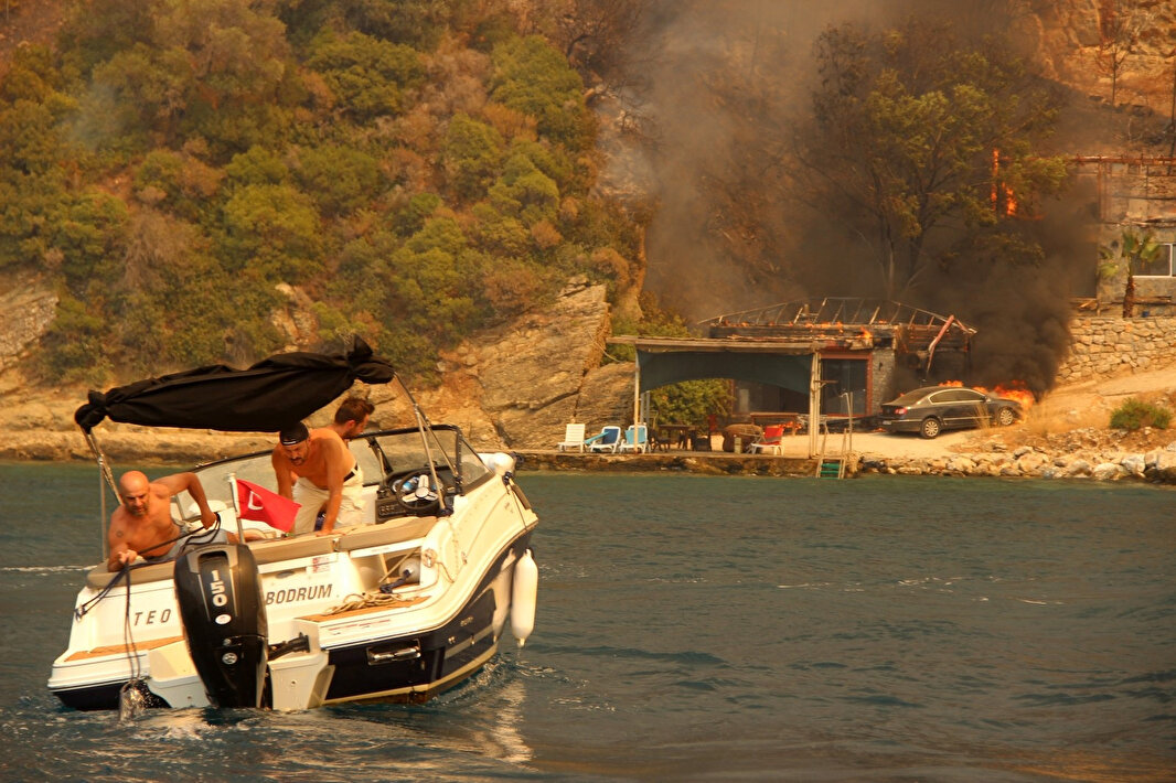 Çökertme koyuna yanaşan çok sayıda bot ve tekne vatandaşların tahliyesini gerçekleştirirken, teknelerle yiyecek, içecek sevkiyatı yapıldı.