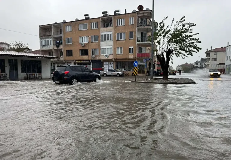 Sağanak nedeniyle cadde ve sokaklar göle döndü