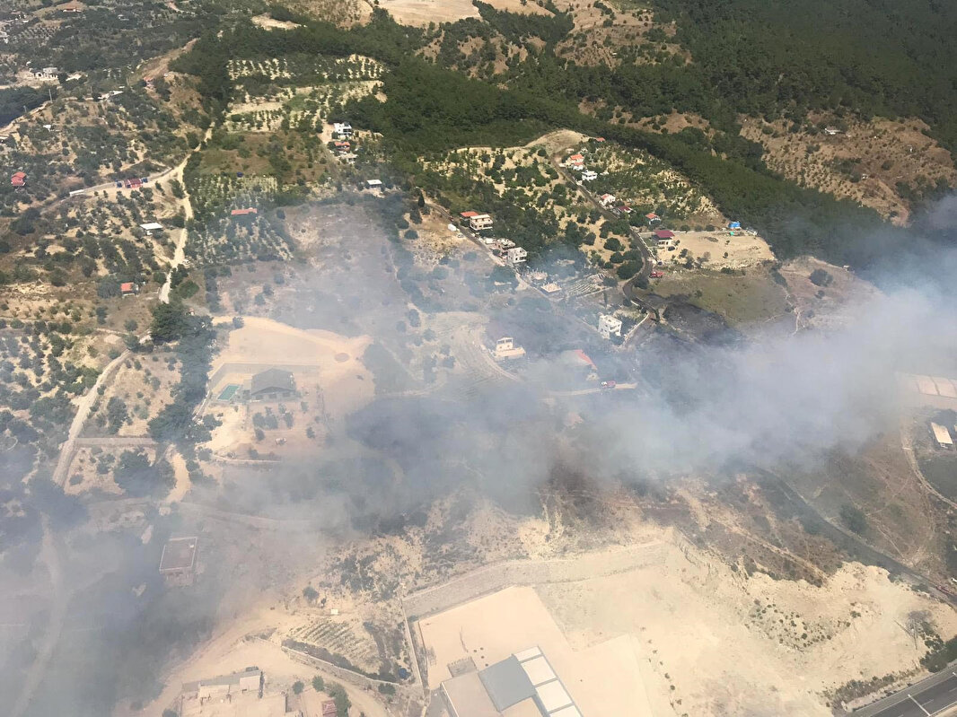 Tarım ve Orman Bakanı Bekir Pakdemirli, Tırazlı Mahallesi'ndeki ekiplerin söndürme çalışmalarını helikopterle havadan denetledi.