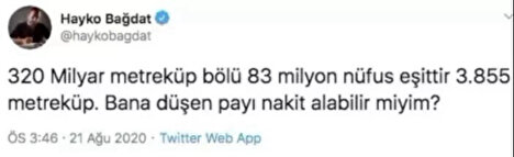 320 milyar metreküp bölü 83 milyon eşittir 3.855 metreküp. Bana düşen payı nakit alabilir miyim?