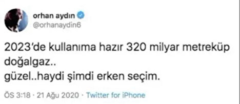 2023’te kullanıma hazır 320 milyar metreküp doğalgaz.. Güzel.. Haydi şimdi erken seçim.
