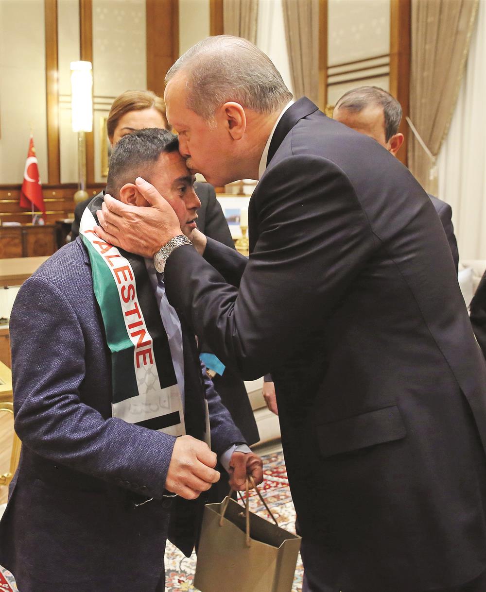 Daha sonra, kabul sırasında Muhammed et-Tavil ile Rabia işareti yaparken çekilen fotoğrafı Twitter’dan paylaşan Erdoğan, paylaşımında, “Kudüslü Muhammed kardeşim ile dünyaya mesajımız şudur, Kudüs kırmızı çizgimizdir.” ifadesine yer verdi.