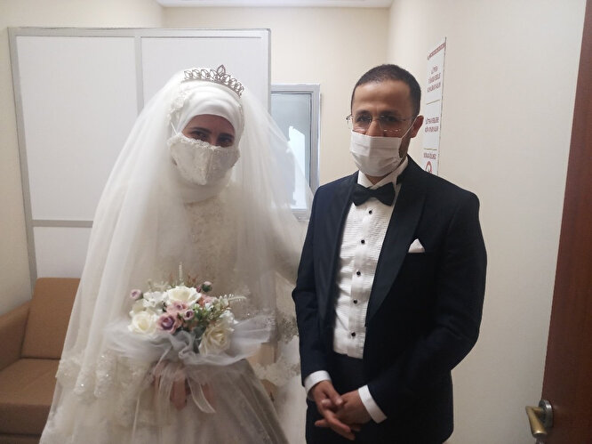 Yeni tip korona virüse (Covid-19) karşı normalleşme adımları çerçevesinde çiftlerin nikahları az sayıda yakınlarının katılımıyla kıyılmaya başlandı.
