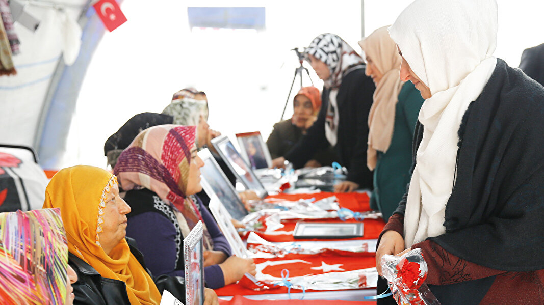 - Şanlıurfa’daki bazı sivil toplum kuruluşlarının kadın temsilcilerinden oluşan heyet, evlat nöbetini sürdüren aileleri ziyaret ederek, desteklerini iletti. Şanlıurfalı kadınlar, bekleyişini sürdüren annelere kırmızı gül verdi, yanlarında getirdikleri suyu ikram etti. Kadınlar adına açıklama yapan Elbirliği Derneği Başkanı Handan Karataş, anneleri oturma eylemine başladıkları günden bu yana takip ettiklerini, acılarını paylaştıklarını söyledi. “Onların yürek yangını bizim yürek yangınımız, üzüntüleri bizim üzüntümüz” diyen Karataş, bir nebze de olsa dertlerine ortak olmak amacıyla ziyareti gerçekleştirdiklerini belirtti. Karataş, Şanlıurfa’dan beraberlerinde getirdikleri, “kutsal olduğuna inanılan” suyu ailelere ikram ettiklerini anlatarak, şöyle konuştu: “Her daim yanlarında olmaya devam edeceğiz. Oturma eylemi yapan aileler yalnız değil. Dualarımızla annelerin yanındayız. Tüm Türkiye’deki annelere sesleniyorum. Lütfen buradaki anneleri yalnız bırakmayın.”