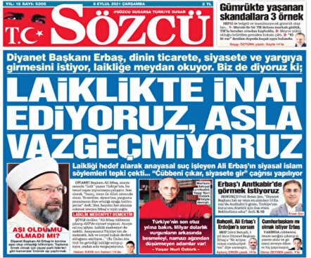 Gazete, Yargıtay’daki adli yıl açılışında Erbaş tarafından yapılan duayı sindiremedi ve “Şeriat çığlığı atıyor” manşetini atarak rejimin değiştirilmek istendiği yalanını sahneye koydu.