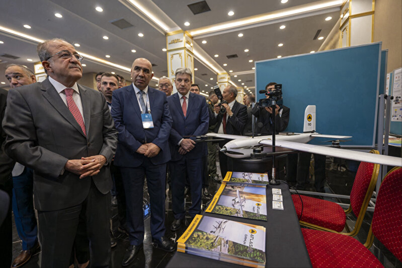 Milli Savunma Bakan Yardımcısı Şuay Alpay (solda) ve beraberindekiler, haritacılık alanında Türkiye'de faaliyet gösteren kurumların ve firmaların stantlarını gezerek bilgi aldı.