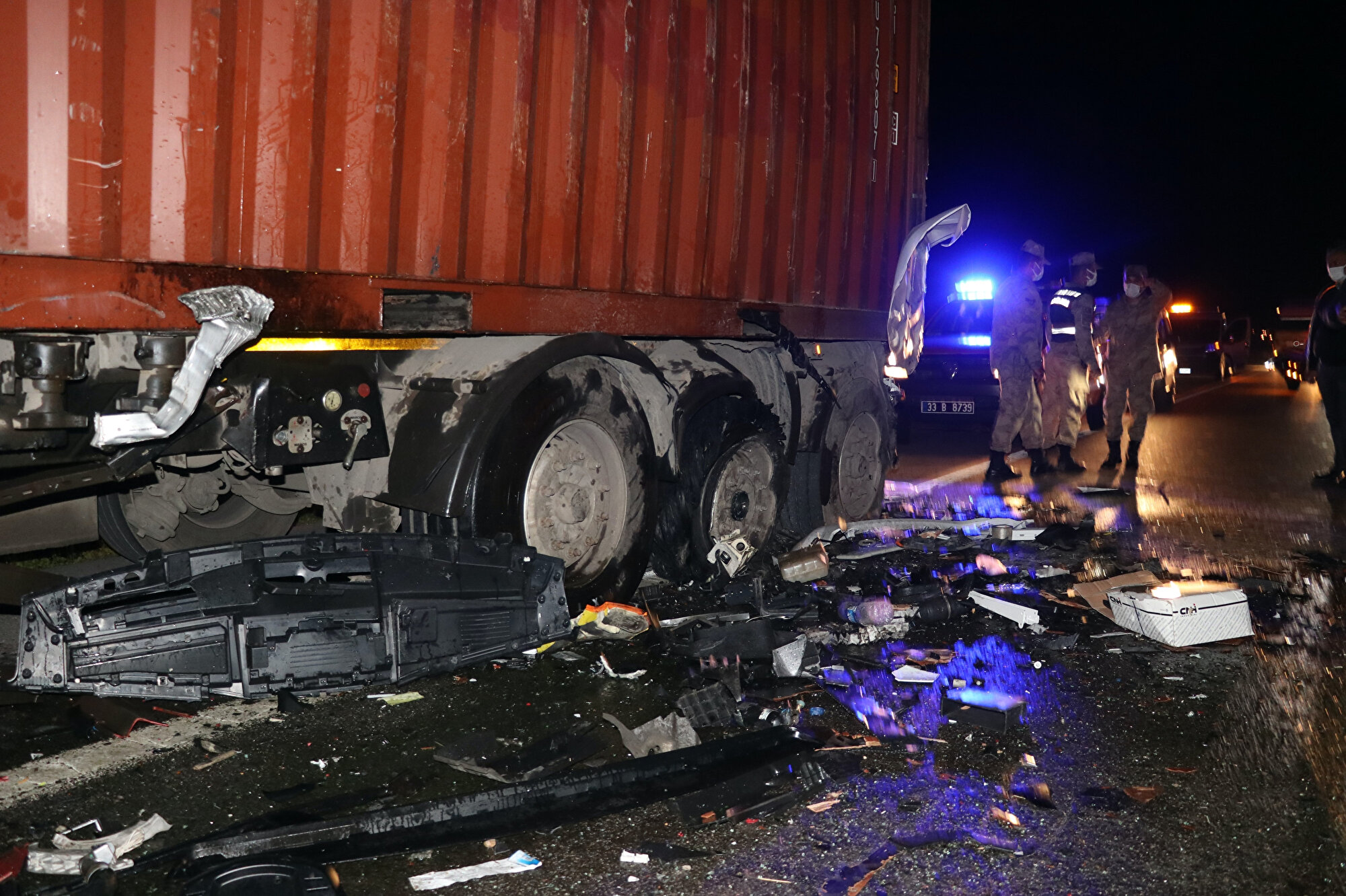 Kazaya karışmamak için fren yapan 80 HD 747 plakalı hafif ticari araca da arkadan gelen 07 ALP 074 plakalı tır çarptı.