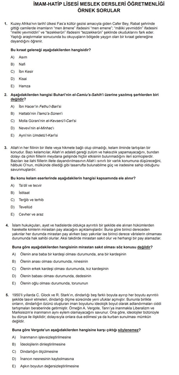 - "ÖABT'de adaylara, Sınıf Öğretmenliği ve Yabancı Dil (İngilizce) alanlarında alan bilgisi ile ilgili 45 soru, alan eğitimi ile ilgili 30 soru; diğer tüm alanlarda ise alan bilgisi ile ilgili 60 soru, alan eğitimi ile ilgili 15 soru sorulacak ve cevaplama süreleri de sözel alanlar için 120 dakika, sayısal alanlar için ise 150 dakika olacak."