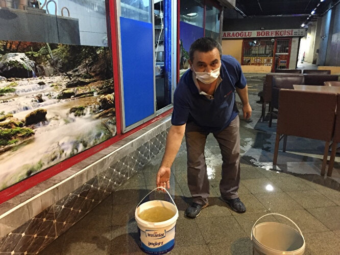 - Daha önceden böyle bir olay yoktu. Yukarısı asfalt yapıldı. Asfaltı kazıdılar ondan sonra yağmur suyu almaya başladı. Bütün dükkanlar mahvoldu. Branda çektiler. Bekliyoruz yetkilileri. Her yağmur yağdığında burası bu şekilde oluyor” diye konuştu.