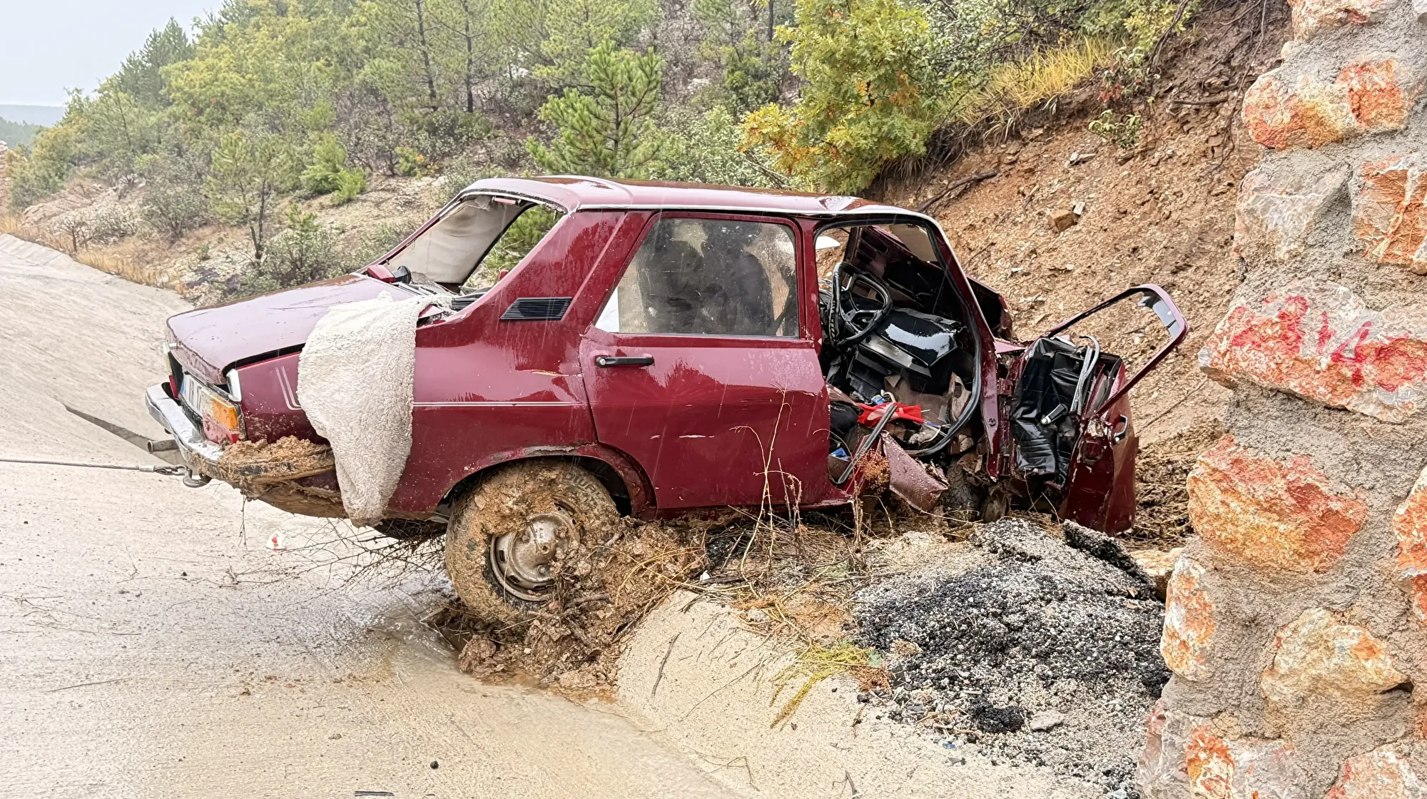 Kütahya'nın Emet ilçesinde, istinat duvarına çarpan otomobilin sürücüsü ile eşi hayatını kaybetti.