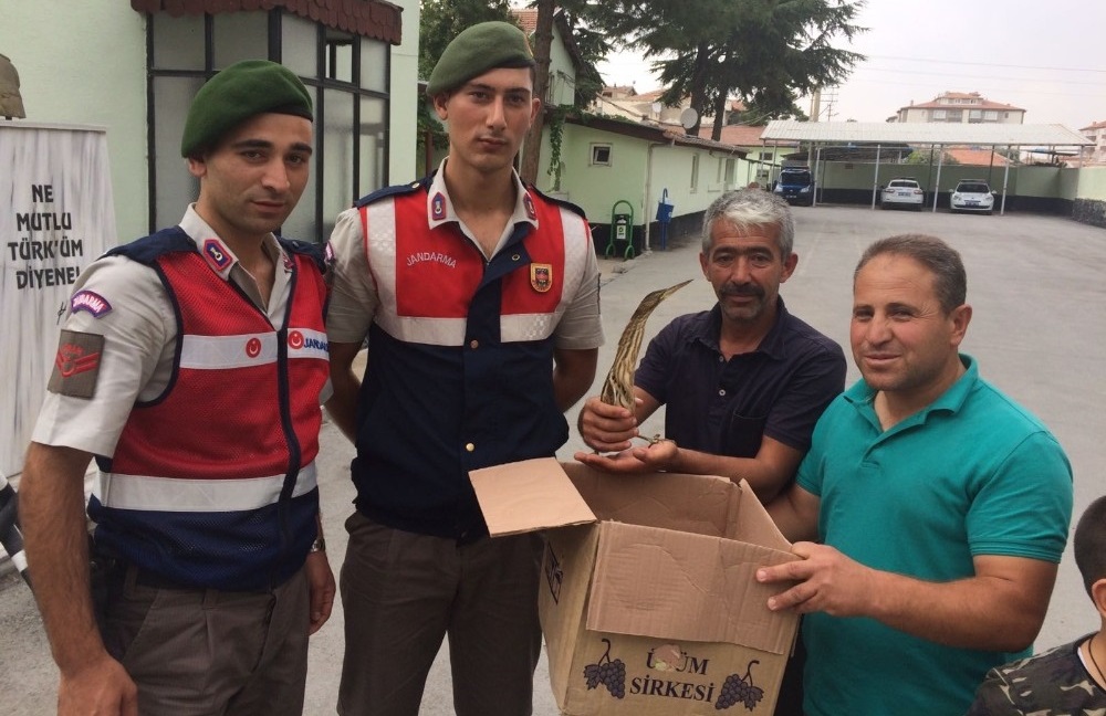 Sarıyıldız, kısa boynu, uzun gagasıyla dikkat çeken ve yavru olduğu tahmin edilen kuşu, kutu içerisine koyduktan sonra İlçe Jandarma Komutanlığına götürerek teslim etti.