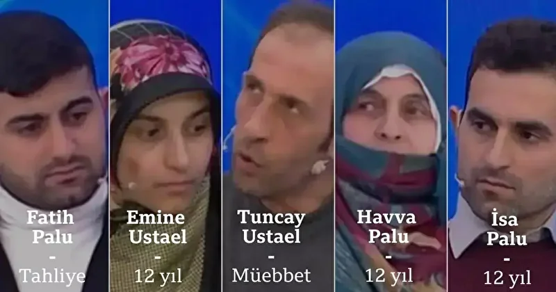 Gözaltına alınan Palu ailesinin beş ferdi ile damatları Tuncer Ustael ve eşi Emine Ustael, adliyeye sevk edilmiş, baba Harun Palu dışındaki tüm isimler tutuklanmıştı.