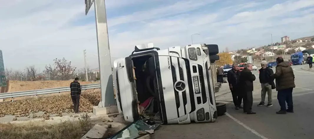 Edinilen bilgiye göre, Kırşehir-Aksaray kara yolu üzerinde sürücüsünün direksiyon hakimiyetini kaybettiği 40 AAU 916 plakalı pancar yüklü kamyon devrildi. Kamyonun devrilmesiyle kasasında bulunan onlarca kilo pancar yola savruldu. Durumun bildirilmesi üzerine kaza yerine jandarma ekipleri sevk edildi. Yaralananın olmadığı kazada ekipler yol üzerinde güvenlik önlemi alarak, temizlik çalışması yaptı.