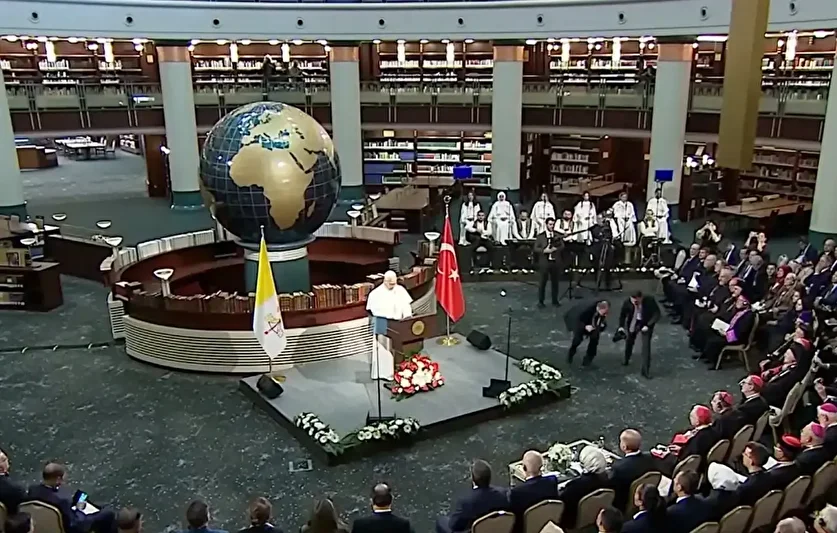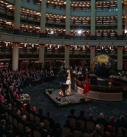 Vatikan Devlet Başkanı Papa 14. Leo, Cumhurbaşkanı Recep Tayyip Erdoğan ile ikili görüşme sonrası Beştepe Millet Kütüphanesi'nde davetlilere hitap etti. Papa "İnsanlar aşırı görüşler nedeniyle giderek parçalanıyor. Dünyanın geleceğinde Türkiye'nin önemli bir yeri var. Türkiye adil ve kalıcı barışın yanında. Ülkenizin doğal güzellikleri bizleri Tanrı'nın yarattıklarını korumaya teşvik etmektedir. Türkiye'nin katkılarıyla daha iyi dünya için işbirliğinde olacağız." dedi.