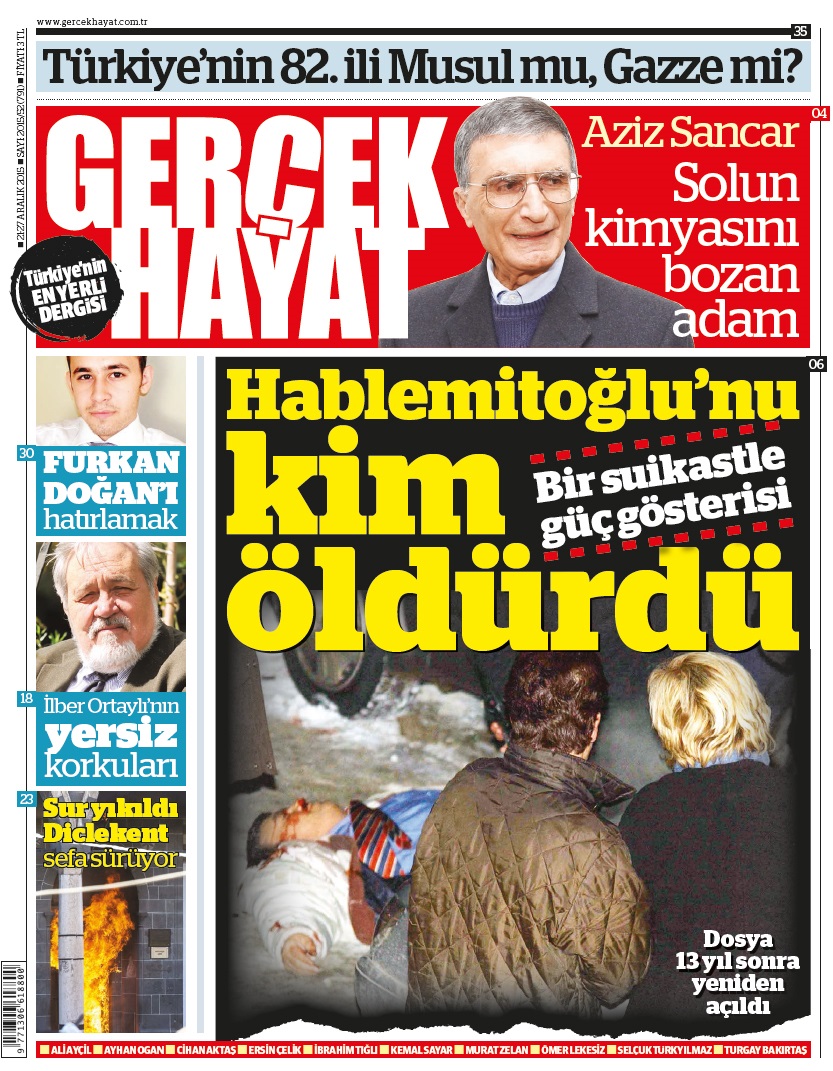 Paralel yapıyı casusluk ekseninde inceleyen ilk kişi olan Necip Hablemitoğlu neden öldürüldü? Suikastı gerçekleştiren kişi polis miydi? Cinayetin ayrıntıları neden gizlendi? Gerçek Hayat dergisi bugün satışa sunulan yeni sayısında bu soruların cevaplarını çarpıcı ayrıntılarla ortaya çıkarıyor.