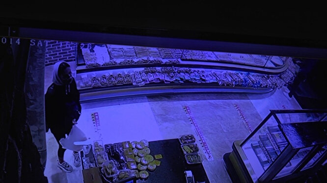 Pastanenin işletmecisi Enver Özenç, "2 kişi içeriye giriyor ne alabiliriz diye çalışan elemanımızı oyalıyorlar dezenfektan sıkma bahanesi ile bayan gelip dezenfektanın yanında bulunan sadaka kutusunu çantasının içine koyuyor" dedi.