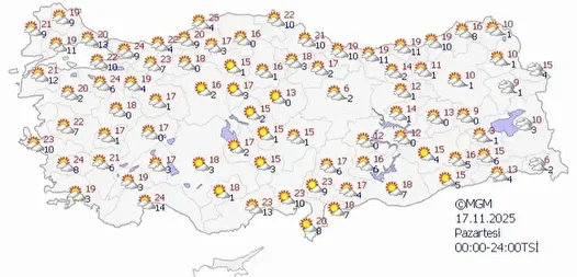 Meteorolojinin son hava durumu tahminlerine göre, hava sıcaklıkları iç ve batı kesimlerde 2 ila 4 derece artacak, mevsim normalleri üzerinde seyredecek. Ülke genelinde bugün yağış beklenmiyor.